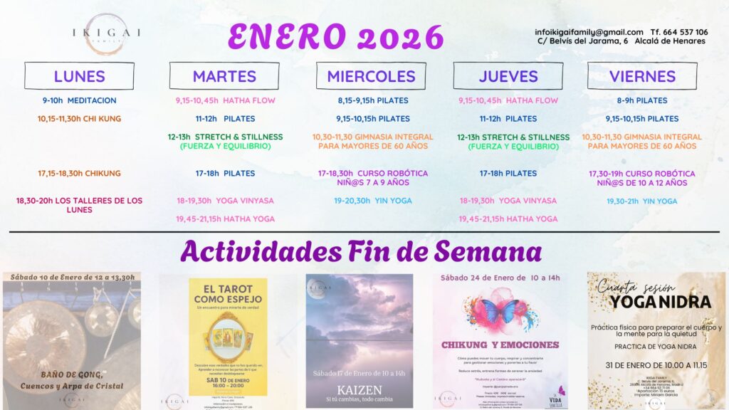Nuestros programas y talleres educativos se dividen en diferentes sesiones a lo largo del mes. Acude a nuestros horarios para conocer cuáles se adaptan mejor a tus actividades cotidianas y acude a nosotros con cualquier duda o pregunta. Para consultas y terapias de NATUROPATÍA, REFLEXOLOGÍA PODAL, MASAJE, OSTEOPATÍA y REIKI llámanos o pásate por aquí para concertar tu cita.